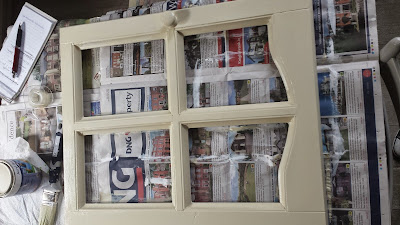 After that, the whole thing got a coat of white undercoat, knobs and all. After the undercoat had dried, I applied two coats of cream satin finish paint, letting the first coat dry overnight.